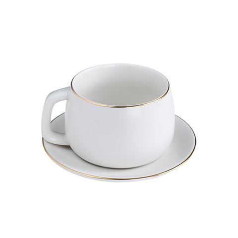 Atacado Logotipo Personalizado Luxo 10oz Nordic Matte Preto Branco Cerâmica Chá Leite Caneca De Café com Pires