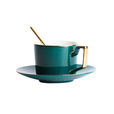 Luxo Reutilizável 8oz Golden Rim Chá Quente Cerâmica Árabe Coffee Cup Set com Logotipo Personalizado Spoon Gift Box