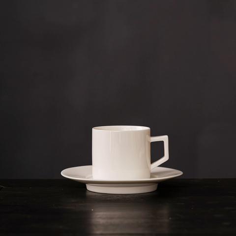 Logotipo personalizado Luxo Novo Design Exclusivo Porcelana Branca Cerâmica Café Chá Espresso Caneca com Pires